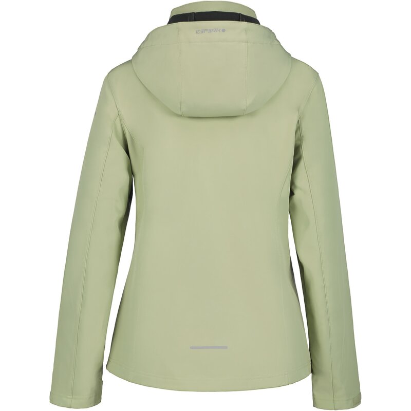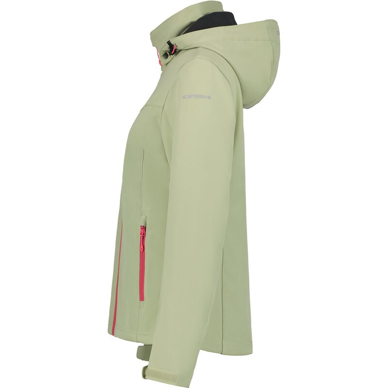 Женская куртка Icepeak. Классический крой. Формованные локти. Удобный внутренний воротник. Капюшон с двухсторонней регулировкой. Съемный капюшон. Регулируемые манжеты на липучке. Два передних кармана на молнии. Ветрозащитная планка. Молния с защитой подбородка. Регулируемый подол. Напечатанный логотип. Водостойкость 8000 мм. Воздухопроницаемость 3000 г/м²/224 ч. При разработке этой модели AWS ACTIVE особое внимание было уделено функциональности и комфорту, что делает ее подходящей как для интенсивных, так и для спокойных занятий. Softshell — функциональный материал для широкого спектра активного отдыха. Изделие обеспечивает защиту от непогоды, оставаясь при этом приятно эластичным. Водоотталкивающая пропитка без ПФУ. Поверхность ткани обработана водоотталкивающим средством. Без подкладки.
