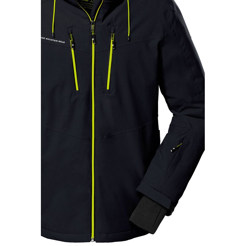 Функциональная куртка killtec со снегозащитой идеально подходит как для горнолыжных склонов, так и для других видов активного отдыха на свежем воздухе. Зимняя куртка дышащая, паропроницаемость 3000 г/м²/24 ч. Она водонепроницаема (водонепроницаемость до 10 000 мм водяного столба) и имеет сварные швы (совет: куртку следует периодически обновлять). Регулируемый капюшон можно снять при необходимости. Снегозащита с нескользящим резиновым покрытием защищает от проникновения снега и влаги. Регулируемые манжеты оснащены удобными манжетами из лайкры с петлями для больших пальцев. Водонепроницаемая молния оснащена практичной защитой подбородка. Ширина подола регулируется шнурком. Многочисленные карманы позволяют разместить горнолыжные очки, ски-пассы и другие вещи. Для killtec особенно важно сделать свои коллекции более экологичными и перспективными. Поэтому killtec уделяет все больше внимания ответственным производственным процессам. Поэтому эта куртка пропитана веществами, не содержащими фтора.