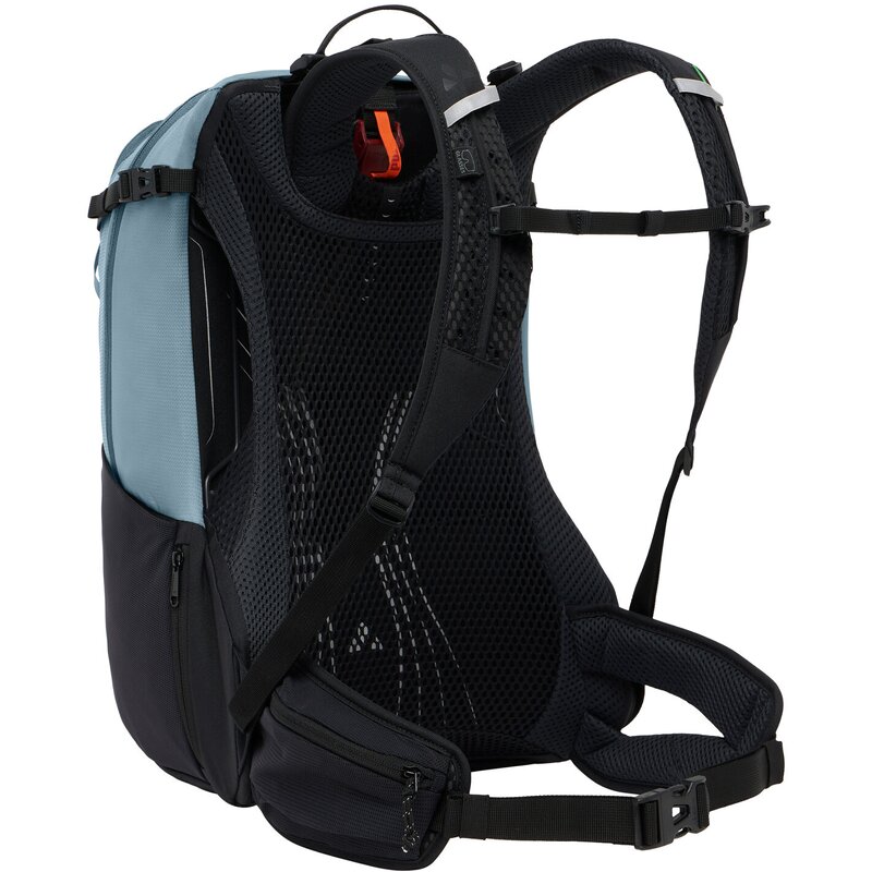 Велосипедный рюкзак объёмом 20 литров станет идеальным спутником для велопробега выходного дня. Он впечатляет превосходной вентиляцией благодаря системе Aeroflex 3D и обеспечивает длительный комфорт благодаря мягким набедренным и плечевым ремням, а также нагрудному ремню с держателем для трубки. Продуманная система отделений отвечает всем требованиям: просторное основное отделение вмещает сменную одежду и необходимые вещи на несколько дней. Дополнительные внутренние отделения предлагают место для питьевой системы, ценных вещей и держателя ключей, обеспечивая порядок. Большой передний карман вмещает насос, инструменты и запасную трубку. Боковые компрессионные ремни предотвращают смещение содержимого при небольшой нагрузке, а сетчатые внешние карманы обеспечивают быстрый доступ к необходимым вещам. Среди других особенностей: держатель для шлема, держатель для фонарика, светоотражающие элементы и встроенный дождевик. Велосипедный рюкзак объёмом 20 литров обработан водоотталкивающей пропиткой Eco Finish без PFC. Знак VAUDE Green Shape означает экологически чистый, функциональный продукт, изготовленный из устойчивых материалов.