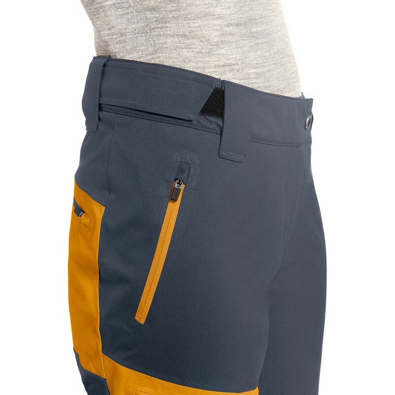 В сложных походах по пересеченной местности, в сложных погодных условиях или во время поездок на горнолыжные склоны правильная одежда имеет решающее значение. Наши туристические брюки Diabas W в спортивном двухцветном дизайне обладают высококачественными функциональными характеристиками. Дышащая ткань mTEX 20 000 защищает от непогоды, эластичная ткань, тянущаяся в двух направлениях, обеспечивает максимальную свободу движений, а водоотталкивающая пропитка без ПФУ обеспечивает непревзойденный комфорт и надежную защиту во время любых занятий на свежем воздухе. На склонах снегозащитный щиток и манжеты на штанинах с противоскользящей резинкой станут незаменимыми элементами. Регулируемый пояс со шлевками для ремня также обеспечивает дополнительный комфорт в любое время. Вентиляция Diabas W обеспечивает достаточную вентиляцию ног. Независимо от того, занимаетесь ли вы треккингом, хайкингом, фрирайдом или катаетесь на склонах, четыре просторных кармана на молнии позволят вам безопасно разместить самые важные вещи во время всех ваших приключений на свежем воздухе.