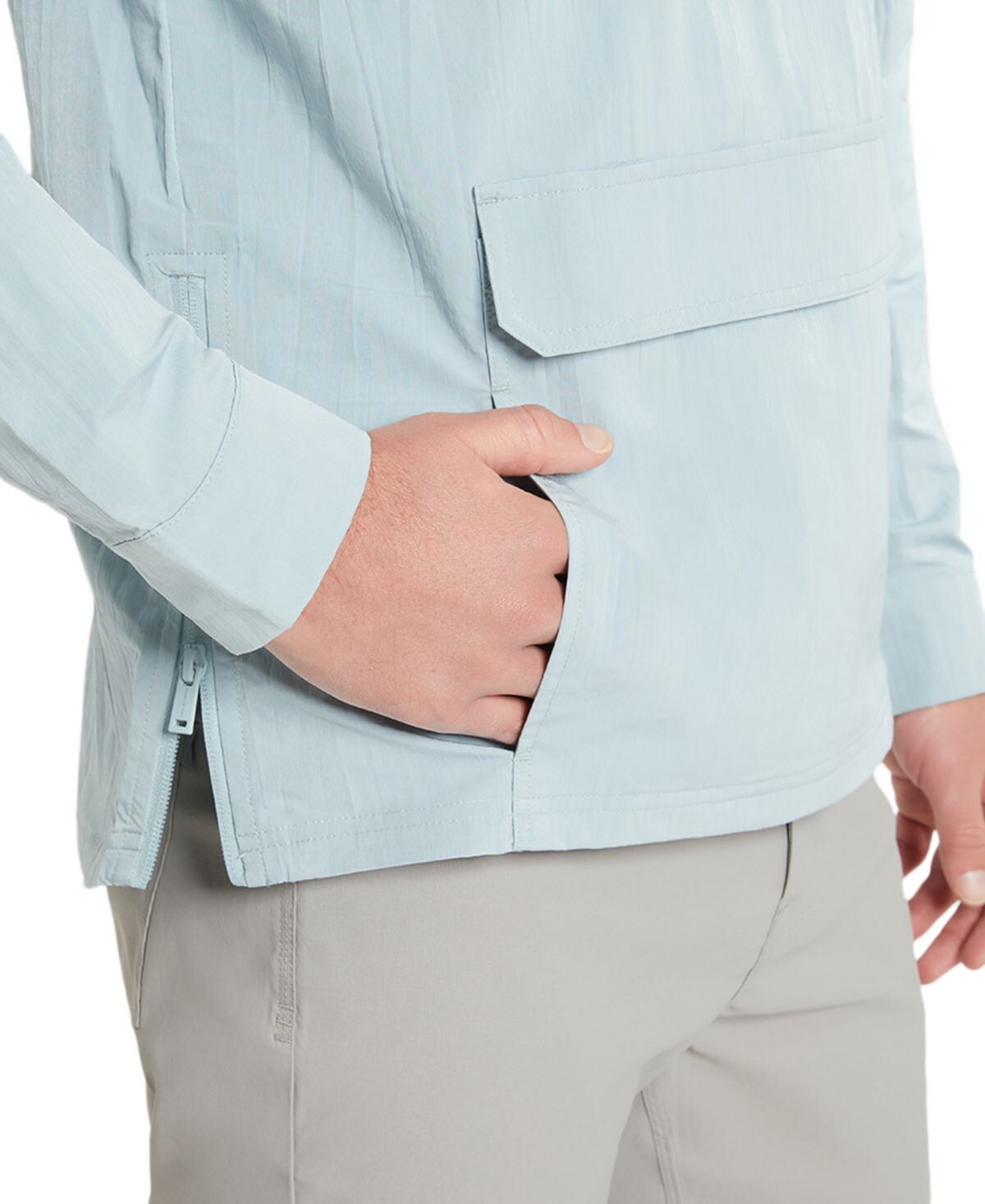 Пройдите свой путь в ветреные и дождливые дни в этой влагоотводящей ветровке от Kenneth Cole с четким воротником-стойкой и вместительным карманом спереди.