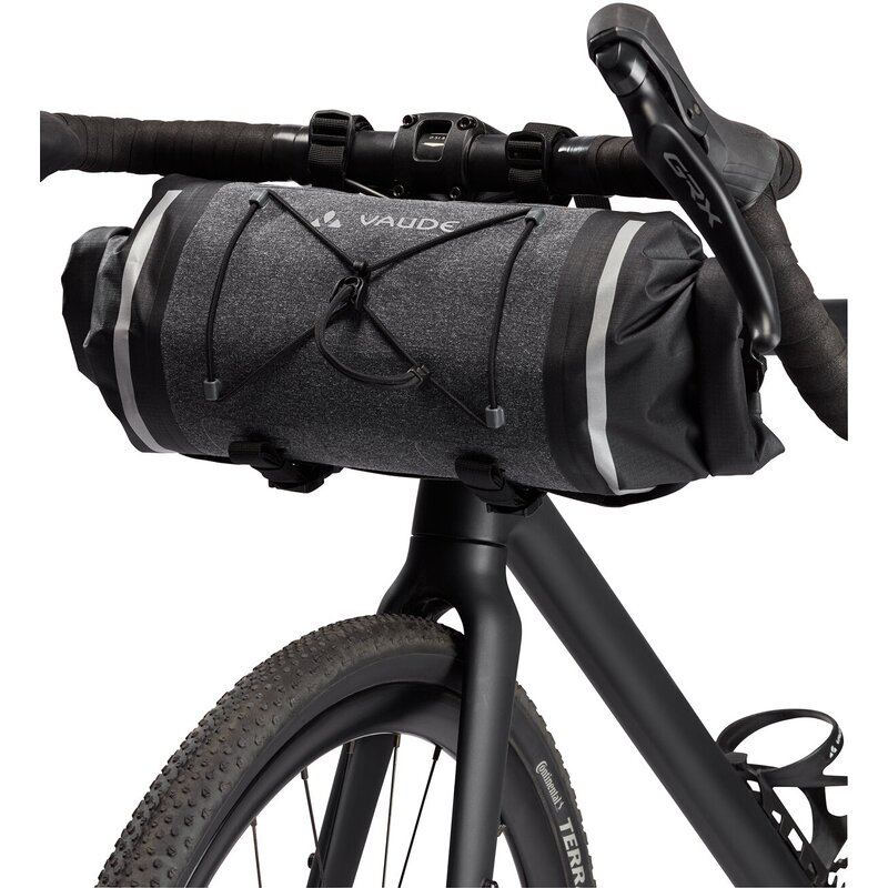 Всё необходимое есть! В сочетании с сумкой-седлом bikepacking водонепроницаемый сварной чехол на руль гарантирует беззаботные выходные. Чехол на руль объёмом 6 литров доступен с обеих сторон и герметично сжимается с помощью застёжек, что делает его идеальным для лёгкого багажа или спального мешка. Дополнительный багаж и даже палатку можно прикрепить снаружи с помощью ремней сверху. Застёжки-липучки позволяют быстро и надёжно закрепить на руле. Регулируемый шнур-фиксатор надёжно удерживает всё необходимое под рукой. Основной материал чехла на руль изготовлен из переработанного полиамида, который получают из текстильных материалов, таких как использованные рыболовные сети. Trailfront Compact лучше всего сочетается с чехлом Trailfront Saddle Compact, чтобы надёжно закрепить небольшой багаж на велосипеде для уик-энда — без необходимости использования багажника. Знак VAUDE Green Shape означает экологически чистые, функциональные продукты, изготовленные из устойчивых и сертифицированных Bluesign материалов.