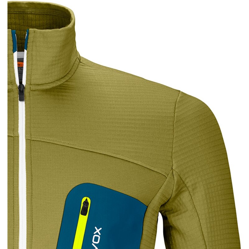 В альпийских приключениях наше снаряжение должно быть лёгким, но тёплым и функциональным. Оно должно одинаково хорошо работать как в долине, так и на ледяных вершинах. Линейка MERINO FLEECE GRID — идеальный спутник в горах: благодаря канавкам внутри эта мужская флисовая куртка лёгкая, но воздушные карманы позволяют ей сохранять воздух и тепло. Вставка FLEECE LIGHT в области груди и двухслойный нагрудный карман обеспечивают лёгкость и дополнительную защиту от ветра. При более интенсивной активности состав материала не только отлично тянется, но и обеспечивает вентиляцию благодаря канавкам внутри. Терморегулирующие свойства поддерживаются тонкой мериносовой шерстью внутри: тасманийская шерсть регулирует влажность и температуру, быстро сохнет и обладает свойствами нейтрализовать запахи. Мериносовая шерсть также обеспечивает удобную посадку. Два нагрудных кармана позволяют хранить карты, мобильный телефон или перекус. Воротник обеспечивает дополнительную защиту от ветра и непогоды.