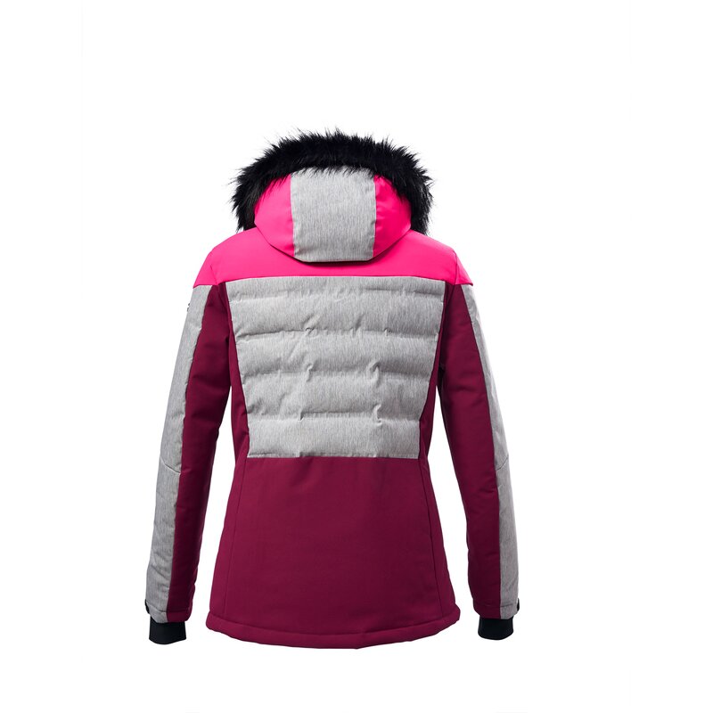 Эта женская функциональная куртка от killtec идеально подходит для горнолыжных склонов и впечатляет своим современным гибридным дизайном. Сочетание цветовых блоков и проклеенных стеганых перегородок сразу же привлекает внимание. Куртка дышащая, паропроницаемость 3000 г/м²/24 ч, и водоотталкивающая, гидростатическое давление 10 000 мм. Съёмный капюшон регулируется по ширине и длине. Искусственный мех можно отстегнуть при необходимости. Снегозащитный экран с нескользящим резиновым покрытием защищает от ветра и снега. Куртка также оснащена множеством удобных карманов и эластичными манжетами с петлями для больших пальцев. Подол куртки регулируется индивидуально с помощью встроенного шнурка. killtec постоянно стремится сделать свои коллекции более экологичными и перспективными. Поэтому killtec уделяет всё больше внимания более ответственным производственным процессам. Поэтому эта куртка не содержит PFC.