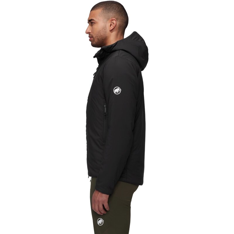 Чрезвычайно мягкий, легкий, ветро- и водоотталкивающий материал с отделкой DWR без PFC; Отдельные зоны с утеплителем Mammut LOOP (80 г/м² тело, 60 г/м² на рукавах и капюшоне)