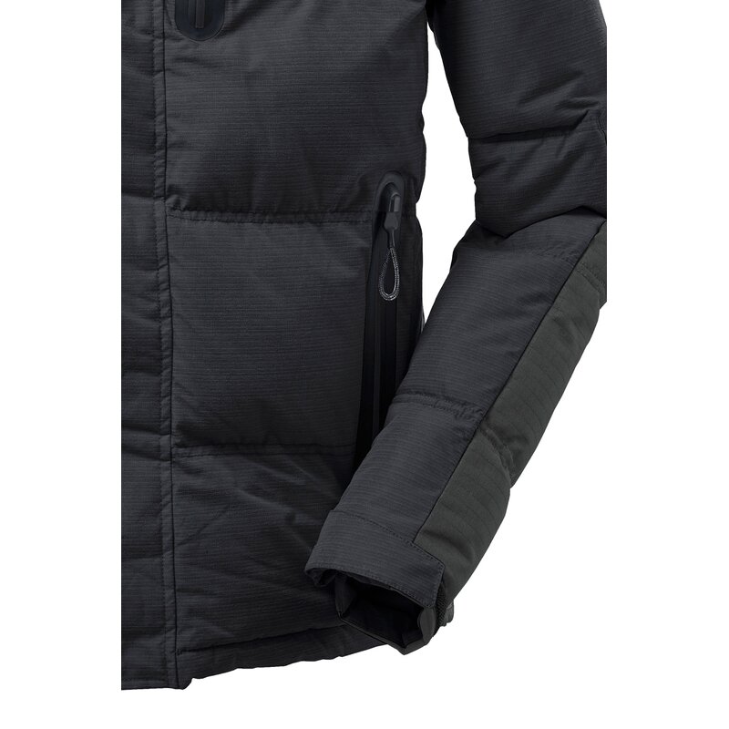 Стеганая зимняя куртка от killtec — надёжный спутник в холодное время года. Классическая стеганая куртка сочетается с современными элементами, такими как ламинированные молнии. Куртка водо- и ветроустойчива (10 000 мм), а также воздухопроницаема (3000 г/м²/24 ч). Съёмный капюшон регулируется по ширине и длине. Манжеты регулируются с помощью застёжек-липучек. Куртка оснащена внутренним карманом для мобильного телефона, а также одним нагрудным карманом и двумя боковыми карманами на молнии. Потайная молния спереди оснащена практичной защитой подбородка. Для killtec особенно важно, чтобы её коллекции были более экологичными и соответствовали требованиям завтрашнего дня. Поэтому killtec уделяет всё больше внимания ответственным производственным процессам. Поэтому эта куртка пропитана веществами, не содержащими фтора.