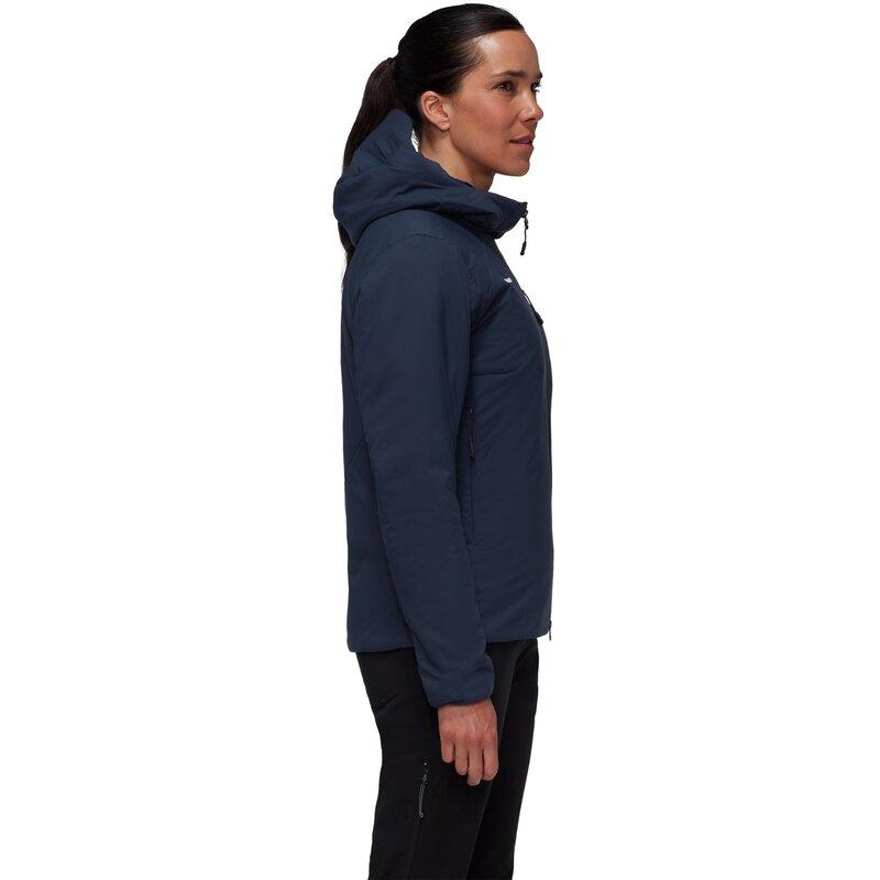 Чрезвычайно мягкий, легкий, ветро- и водоотталкивающий материал с отделкой DWR без PFC; Отдельные зоны с утеплителем Mammut LOOP (80 г/м² тело, 60 г/м² на рукавах и капюшоне)