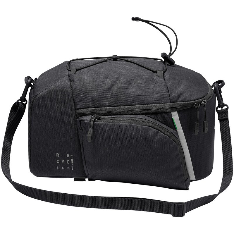 Модная сумка-корзина для городских байкеров, которые хотят иметь все возможности! Сумка крепится к багажнику с помощью липучек, но может быть дооснащена одной из популярных систем крепления (Uniklip, MIK, Snap-it, Snap-it II, I-Rack). Большое основное отделение на молнии имеет подкладку и сетчатый карман для съёмного плечевого ремня. Затягивающийся шнурок сверху позволяет быстро пристегнуть дождевик или жилет. Светоотражающие элементы и петля для фонарика повышают видимость в сумерках и темноте. Основной материал сумки-корзины изготовлен из 100% переработанного полиэстера, обработанного водоотталкивающей пропиткой EcoFinish без ПФУ. Встроенный дождевик защитит от сильного дождя. Знак VAUDE Green Shape обозначает экологически чистый, функциональный продукт, изготовленный из устойчивых материалов.