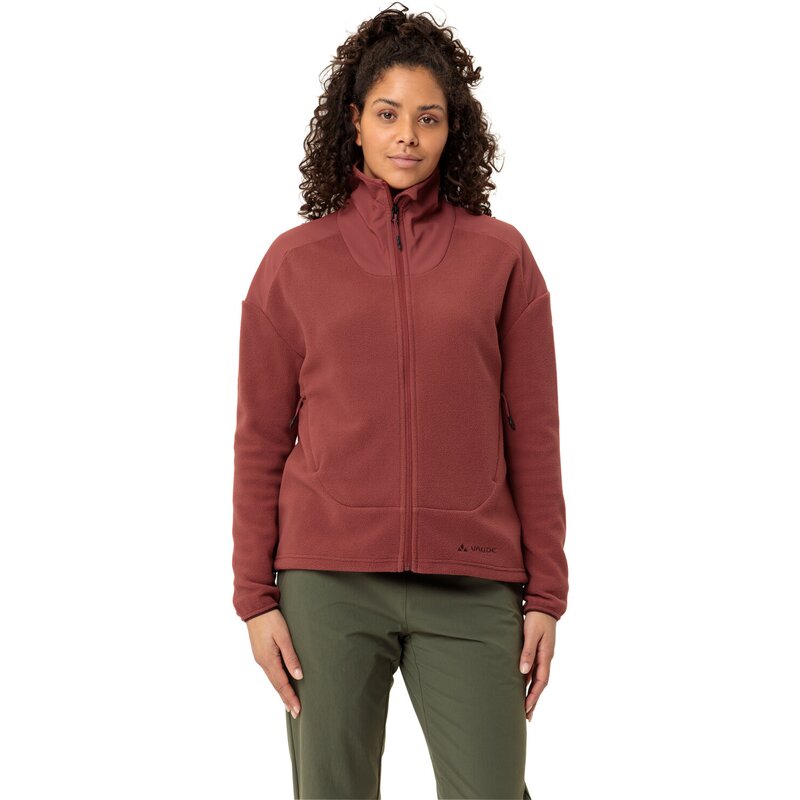 Шикарное сочетание материалов для прохладных осенних дней: мягкий эластичный флис женской флисовой куртки Mineo согреет вас, а тканая отделка на плечах и воротнике защитит от истирания. Это означает, что рюкзак или сумка через плечо не повредят материал, а отделка, к тому же, выглядит стильно. Эта женская флисовая куртка мягкая и удобная, слегка эластичная, с двумя карманами для рук на молнии и практичной кулиской на шнурке по низу. Она согреет вас в межсезонье и станет отличным вторым слоем под дождевиком в дождливую погоду. Маркировка VAUDE Green Shape означает, что это экологически чистый и функциональный продукт, изготовленный из экологически чистых материалов. Будучи членом независимой организации Fair Wear со статусом лидера, VAUDE стремится к справедливым условиям труда и справедливой оплате труда.