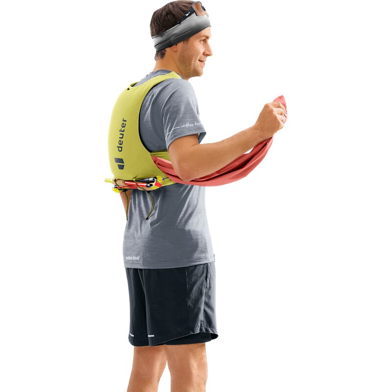Жилет bluesign(R) Product Running Vest плотно облегает фигуру благодаря дышащей эластичной ткани и обеспечивает идеальную посадку. Эластичный нагрудный ремень регулируется индивидуально, обеспечивая свободу движений и свободное дыхание при любой интенсивности. Модульные эластичные шнуры для крепления, например, для сжатия или крепления палок, четыре кармана на каждой лямке и накладные карманы на спине превращают жилет в изысканное, хорошо организованное пространственное чудо для бегунов по пересеченной местности.
