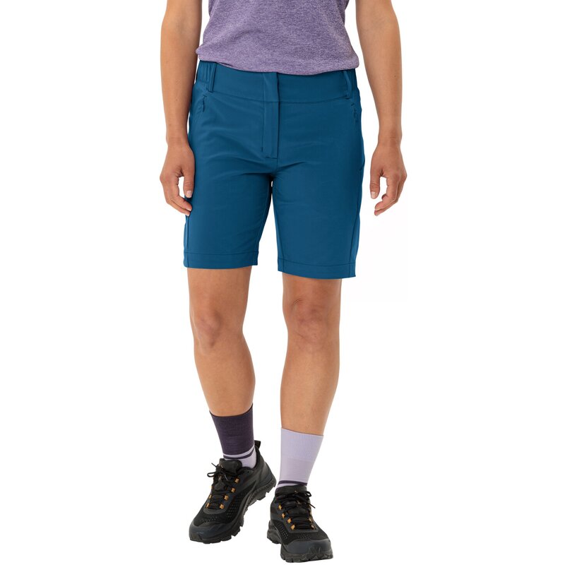 Практичные и удобные: женские бермуды Skomer — идеальный выбор как для походов, так и для повседневной носки. Они мягкие и эластичные, повторяют каждое ваше движение и прекрасно сидят. Удобный высокий, частично эластичный пояс обеспечивает идеальную посадку. И это ещё не всё: лёгкая ткань легко стирается и быстро сохнет, поэтому они готовы к использованию в кратчайшие сроки даже в многодневных походах. Благодаря женственному крою и деталям, таким как небольшой разрез по краю брючин, эти бермуды станут настоящей приманкой не только в горах, но и в повседневной жизни. Два передних кармана на потайных молниях обеспечивают достаточно места для мелких вещей. Знак VAUDE Green Shape означает экологически чистые, функциональные изделия, изготовленные из перерабатываемых материалов.