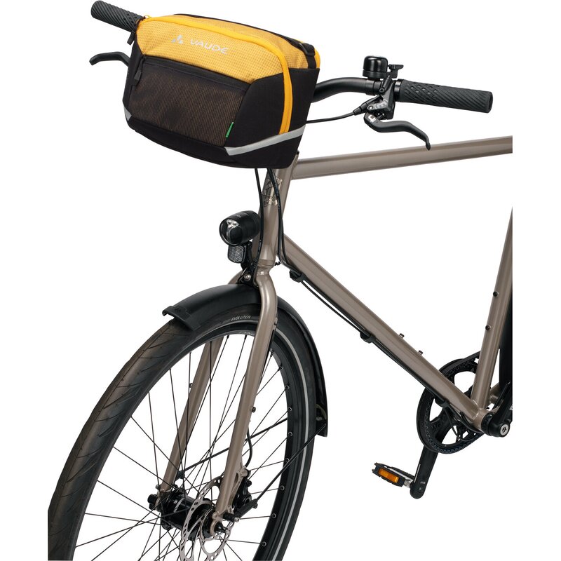 Для городских велосипедистов, следящих за модой и предпочитающих не ездить на машине! Эта модная сумка на руль для круглогодичного использования крепится к рулю с помощью системы KLICKfix (крепление на руль не входит в комплект). Сумка имеет небольшое основное отделение и накладной сетчатый карман. Карман на молнии, обращенный к телу, надежно защитит кошелек или мобильный телефон. Светоотражающие элементы, гармонично вписанные в дизайн, повышают видимость в сумерках и темноте. Обязательно наличие складного ремня для переноски и дождевика. Основной материал сумки на руль велосипеда изготовлен из 100% переработанного полиэстера, обработанного водоотталкивающей пропиткой EcoFinish без ПФУ. Знак VAUDE Green Shape означает экологически чистый, функциональный продукт, изготовленный из перерабатываемых материалов.