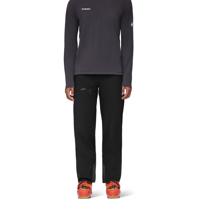Ветро- и водонепроницаемый двухслойный материал Mammut DRYtechnology Pro; Ширина штанины регулируется кнопками; Внешняя регулировка талии для идеальной посадки; Шлевки для ремня
