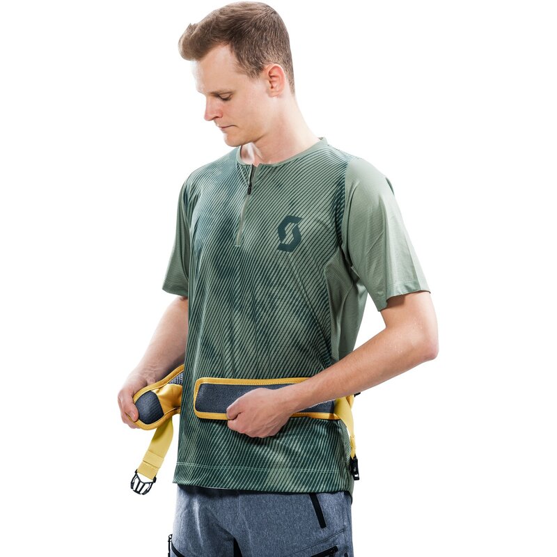 Экологически нейтральный, не содержащий ПФАС и сертифицированный Green Button, продукт bluesign® эргономично облегает тело, обеспечивая максимальную свободу движений и оптимальную посадку как на трассах с плавным ходом, так и на сложных участках. Удобная система переноски с эластичным поясным ремнем и дышащей, быстросохнущей сеткой Air Spacer Mesh обеспечивает полную вентиляцию спины. В дополнение к органайзеру для инструментов и компактным набедренным карманам, убирающийся держатель защитного чехла позволяет набедренной сумке экономить место и предлагает место для питьевой системы.