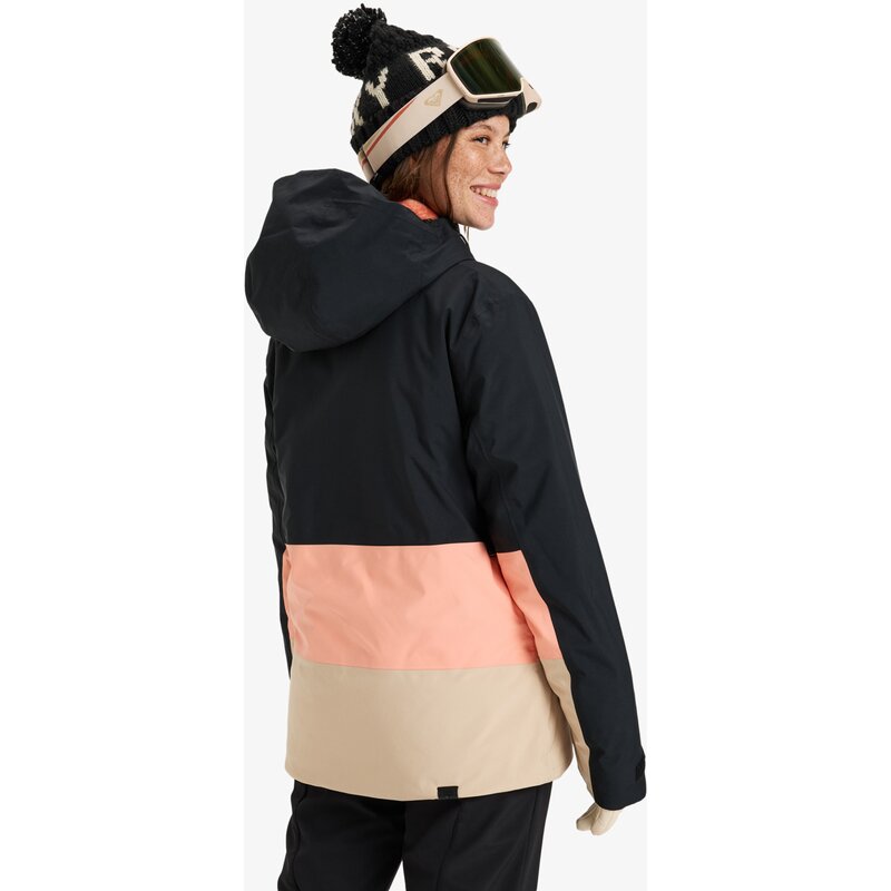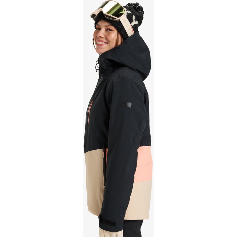 Снежная куртка для женщин. Характеристики этого продукта включают: Крой: короткий, приталенный, Водонепроницаемость: технология ROXY DryFlight 10K [10 000 мм / 10 000 г], долговечная водоотталкивающая обработка без PFC, Полностью проклеенные швы, Технология: технология ROXY HYDROSMART в воротнике, Совместимо с поясом ROXY WarmLink, Ткань: JIAREN 100% переработанный полиэстер эластичное полотняное переплетение, Утеплитель: ROXY WarmFlight, 100% переработанный [Наполнитель: 120 г тело, 100 г рукава, 60 г капюшон], Подкладка: легкая тафта 60% переработанного полиэстера с эластичными вставками, Другие характеристики: регулируемый в 3 направлениях фиксированный капюшон, YKK Aquaguard на основной молнии, Карманы для рук и нагрудный карман, 3D-формованная фиксированная юбка для защиты от снежного покрова с эластичными кнопками и кнопками, Система крепления куртки и брюк, карманы для медиа и маски внутри, подъем Карман для пропуска на рукаве, сетчатая подкладка для вентиляции под мышками, эластичная защита от снега с отверстием для большого пальца на внутренней стороне запястья и карабин для ключей.