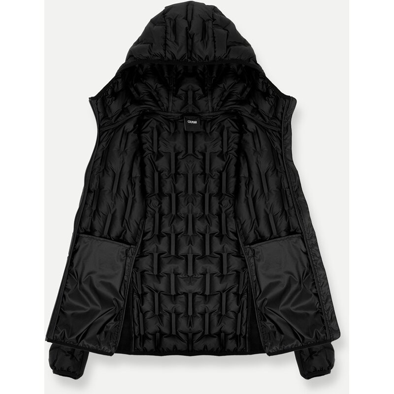 Женская куртка с несъемным капюшоном из полиэстеровой ткани со вставками из эластичного материала софтшелл. Основа выполнена из трубчатой ткани, склеенной из двух полиэстеровых тканей со смещенным геометрическим микро-узором. В результате получается бесшовная стеганая конструкция. Эта модель отличается спортивным стилем и сочетает в себе технологичность и комфорт благодаря эластичным вставкам по бокам и под рукавами, а также мягкой подкладке из натурального пуха. Идеально подходит для активного отдыха зимой или в качестве среднего слоя под мембранную куртку. Экологически устойчивая водоотталкивающая отделка Teflon EcoElite является частью проекта Colmar Green Path по защите окружающей среды.