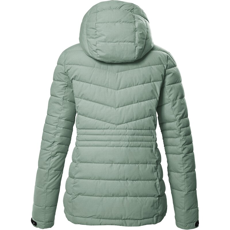 Эта женская куртка-пуховик от killtec со съёмным регулируемым капюшоном – поистине универсальная вещь. Изысканная стёжка и меланжевый дизайн делают её особенной. Куртка водо- и ветроустойчива (гидростатическое давление 10 000 мм), но при этом дышащая. Манжеты регулируются застёжками-липучками. Два боковых кармана и внутренний карман позволяют хранить телефон, ключи и другие необходимые вещи. Для killtec особенно важно, чтобы её коллекции были более экологичными и соответствовали требованиям завтрашнего дня. Поэтому killtec уделяет всё больше внимания более ответственным производственным процессам. Эта куртка пропитана веществами без фтора и частично изготовлена из переработанного материала.