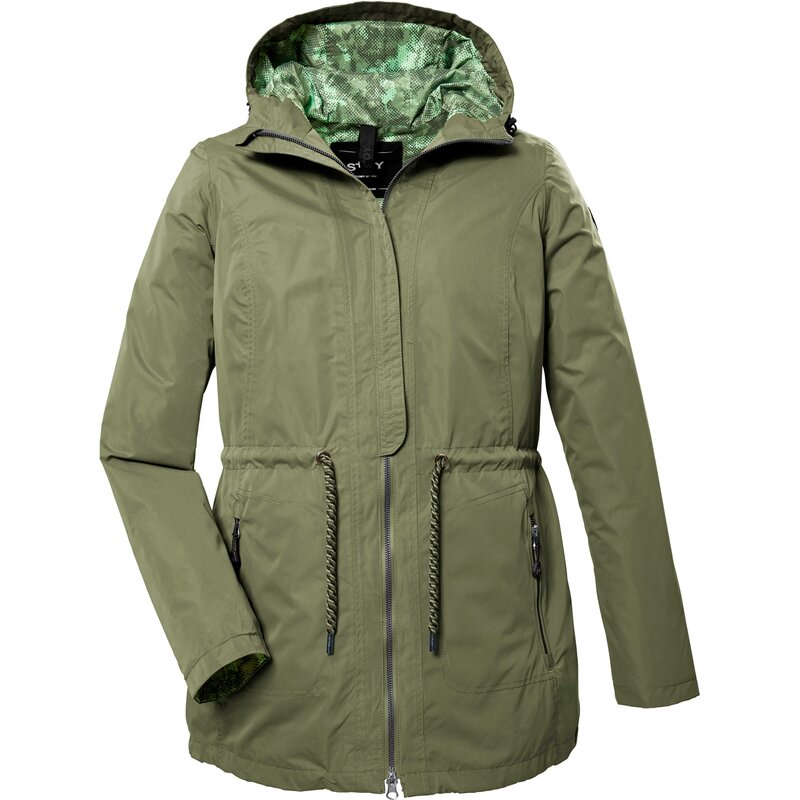 Эта женская функциональная куртка с регулируемым капюшоном отлично подходит как для города, так и для активного отдыха. Благодаря гидростатическому напору 10 000 мм и сварным швам куртка на 100% водонепроницаема и ветрозащитна. Кроме того, она дышащая, с паропроницаемостью 5000 г/м²/24 ч. Вентиляционные отверстия предотвращают переохлаждение тела и обеспечивают отвод влаги наружу. Ширина талии и подола регулируется с помощью шнурков. Частично потайная двухсторонняя молния водонепроницаема и оснащена защитой подбородка. Куртка оснащена двумя внутренними карманами и двумя боковыми карманами, обеспечивая много места для хранения.