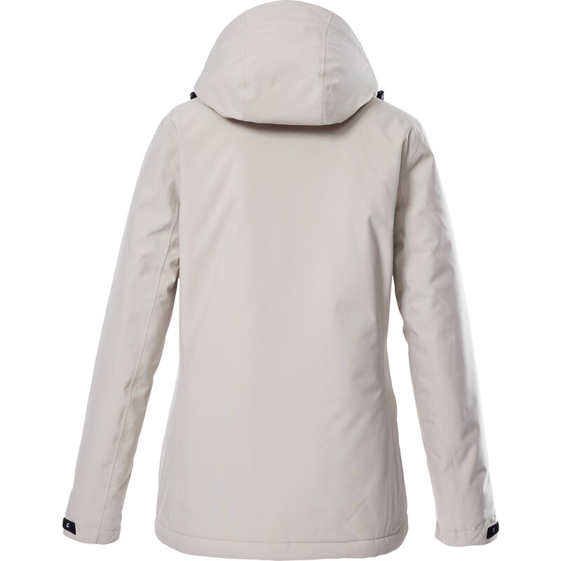 Эта женская функциональная куртка от killtec впечатляет своим вневременным дизайном и функциональностью. Она водонепроницаема и ветрозащитна благодаря сварным швам и гидростатическому напору 10 000 мм (наш совет: для сохранения водонепроницаемости рекомендуем периодически обновлять пропитку). Куртка также дышащая, паропроницаемость составляет 3000 г/м²/24 ч. Капюшон регулируется и при необходимости отстегивается на молнии. Манжеты регулируются застежками-липучками. Два закрывающихся боковых кармана и внутренний карман обеспечивают место для хранения мобильного телефона, ключей и т. д. Защита подбородка на потайной молнии спереди предотвращает защемление кожи.
