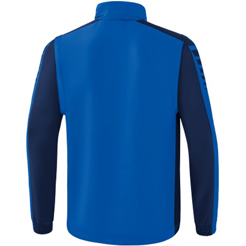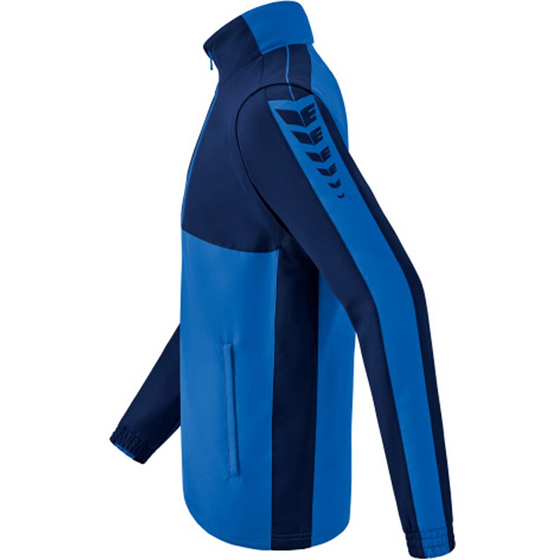 Куртка Six Wings со съёмными рукавами идеально подходит для переменчивой погоды. Эту ветро- и водонепроницаемую куртку можно носить как жилет. Рукава легко отстёгиваются. В ненастную погоду флисовая подкладка и капюшон, встроенный в воротник, обеспечивают оптимальную защиту от холода и дождя. Для защиты от холода куртка оснащена манжетами на рукавах и шнурком на подоле. Куртка дополнена стильным дизайном крыльев ERIMA на плечах и современным двухцветным дизайном.