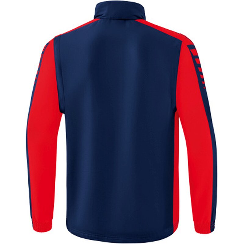 Куртка Six Wings со съёмными рукавами идеально подходит для переменчивой погоды. Эту ветро- и водонепроницаемую куртку можно носить как жилет. Рукава легко отстёгиваются. В ненастную погоду флисовая подкладка и капюшон, встроенный в воротник, обеспечивают оптимальную защиту от холода и дождя. Для защиты от холода куртка оснащена манжетами на рукавах и шнурком на подоле. Куртка дополнена стильным дизайном крыльев ERIMA на плечах и современным двухцветным дизайном.
