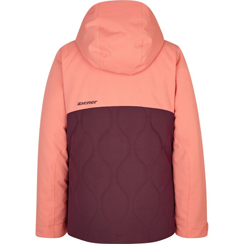 Функциональная утепленная горнолыжная куртка ZIENER AYLA JUNIOR для девочек надежно согреет вас в холодную погоду благодаря высококачественному утеплителю плотностью 120 г/м² и мягкой подкладке на спине и воротнике. Куртка также оснащена дышащей, водонепроницаемой и ветрозащитной мембраной ZIENER AQUASHIELD (водонепроницаемость 10 000 мм / воздухопроницаемость 10 000 г/м² / 24 ч), которая обеспечивает теплый и сухой климат. Эластичные манжеты гарантируют идеальную посадку. Важнейшие швы проварены. Куртка также оснащена карманами для горнолыжных очков, смартфона, ски-пасса и снегозащитного чехла. Нижняя часть куртки стеганая, что делает ее безусловной модной деталью. Она также имеет светоотражающие элементы дизайна. Благодаря экологически чистой пропитке горнолыжная куртка не содержит PFC. Капюшон соответствует стандарту безопасности детской одежды DIN EN 14682.