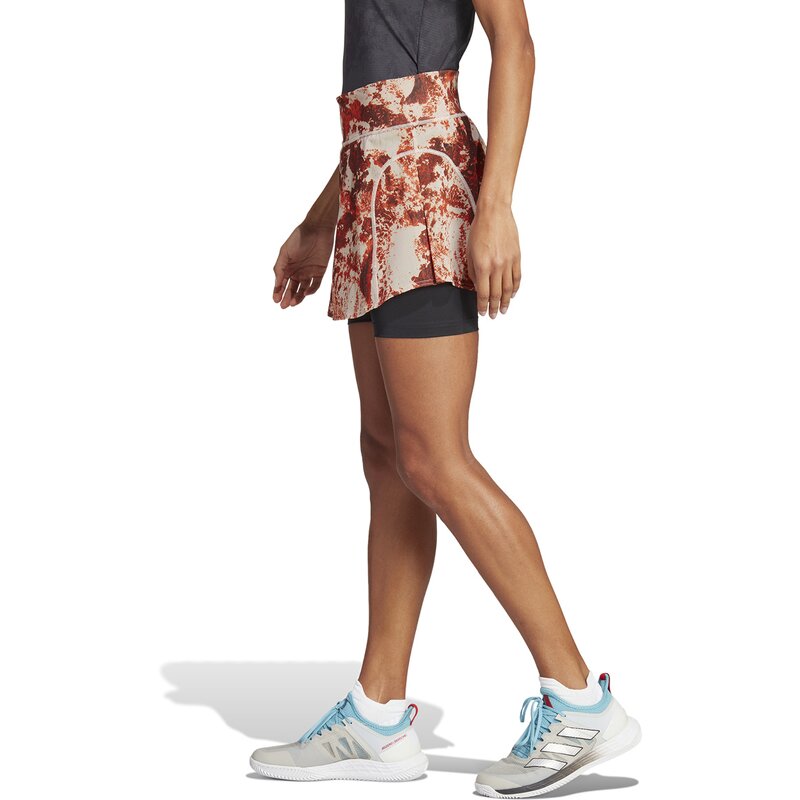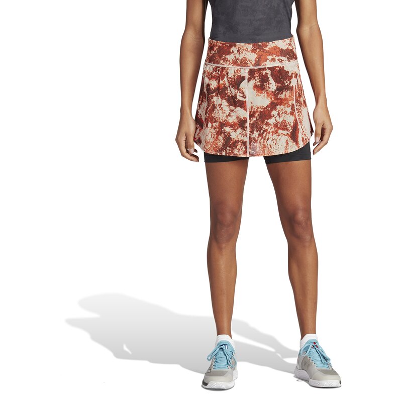 Настоящий стиль грунтового корта. Эта теннисная юбка входит в коллекцию adidas, вдохновленную уникальным покрытием парижского корта. Графический принт напоминает о типичном грунтовом корте. Благодаря этому вы идеально впишетесь в обстановку теннисного корта. Помимо стильного внешнего вида, юбка также может похвастаться такими функциональными особенностями, как слегка расклешенный крой и боковые складки для оптимальной свободы движений на корте. Вшитые короткие леггинсы придадут вам уверенности в каждом движении.