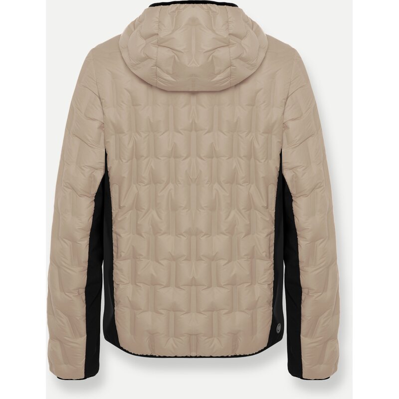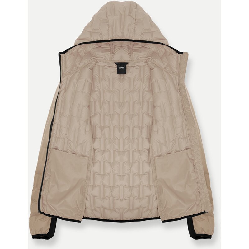 Мужская куртка с капюшоном из полиэстера со вставками из эластичной ткани софтшелл. Трубчатая ткань, используемая в основе, создана путем склеивания двух полиэстеровых тканей со смещенными геометрическими микро-узорами. В результате получается бесшовная стеганая конструкция. Сочетая в себе технологичность и комфорт, эта куртка идеально подходит в качестве термокуртки для всех зимних видов активного отдыха на свежем воздухе или в качестве промежуточного слоя под мембранной курткой. Экологичное водоотталкивающее покрытие Teflon EcoElite является частью проекта Colmar Green Path по защите окружающей среды.