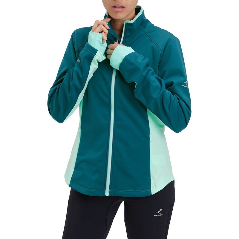 Легкая функциональная беговая куртка Susa II от ENERGETICS изготовлена из лёгкого и дышащего двухслойного функционального материала с технологией VENTMAX, защищающего от ветра и дождя во время пробежек. Материал софтшелл ветронепроницаем, водоотталкивающий, дышащий, а также влаго- и терморегулирующий. Куртка плотно прилегает к телу и обеспечивает оптимальную защиту от ветра и холода. Отличительной особенностью куртки являются перчатки, встроенные в манжеты. Светоотражающие элементы и застежка-кнопка под передней молнией, которая не дает беговой куртке расстегиваться во время бега, завершают дизайн.