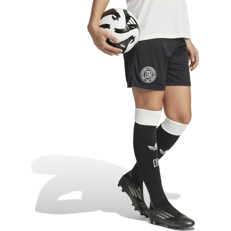 Эти особенные шорты adidas – символ 125-летия сборной Германии. Они – часть формы, вдохновлённой этой историей успеха и отмечающей связь команды с adidas. Дизайн в классическом чёрно-белом цвете дополнен тональным трилистником и специальным юбилейным логотипом DFB. Влагопоглощающая технология AEROREADY обеспечивает сухость и комфорт во время болельщиков. Изделие изготовлено из 100% переработанных материалов. Повторное использование существующих материалов помогает нам сократить отходы, снизить зависимость от невозобновляемых ресурсов и уменьшить углеродный след нашей продукции.
