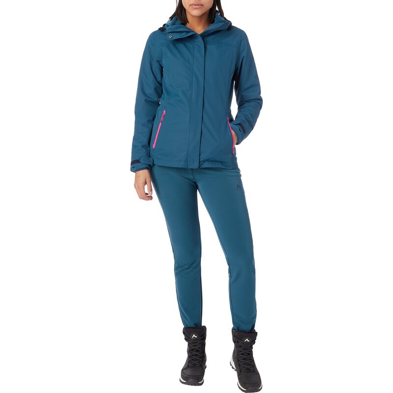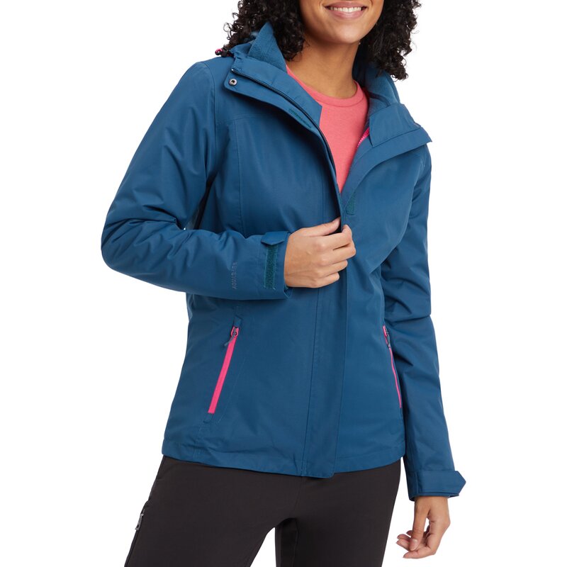 Куртка 3 в 1 для активного отдыха и повседневной носки «Terang II» от McKINLEY идеально подходит для переменчивых погодных условий. Внешний материал имеет дышащее покрытие AQUAMAXelite 5.3, которое защищает от влаги и ветра при давлении до 5000 мм водяного столба. Внутренняя куртка из мягкого и лёгкого полиэстерового флиса с воротником-стойкой при необходимости снимается и надевается отдельно. Съемный капюшон, элегантные, продуманные линии, пять практичных карманов и водонепроницаемые молнии идеально дополняют общий вид этой женской куртки.