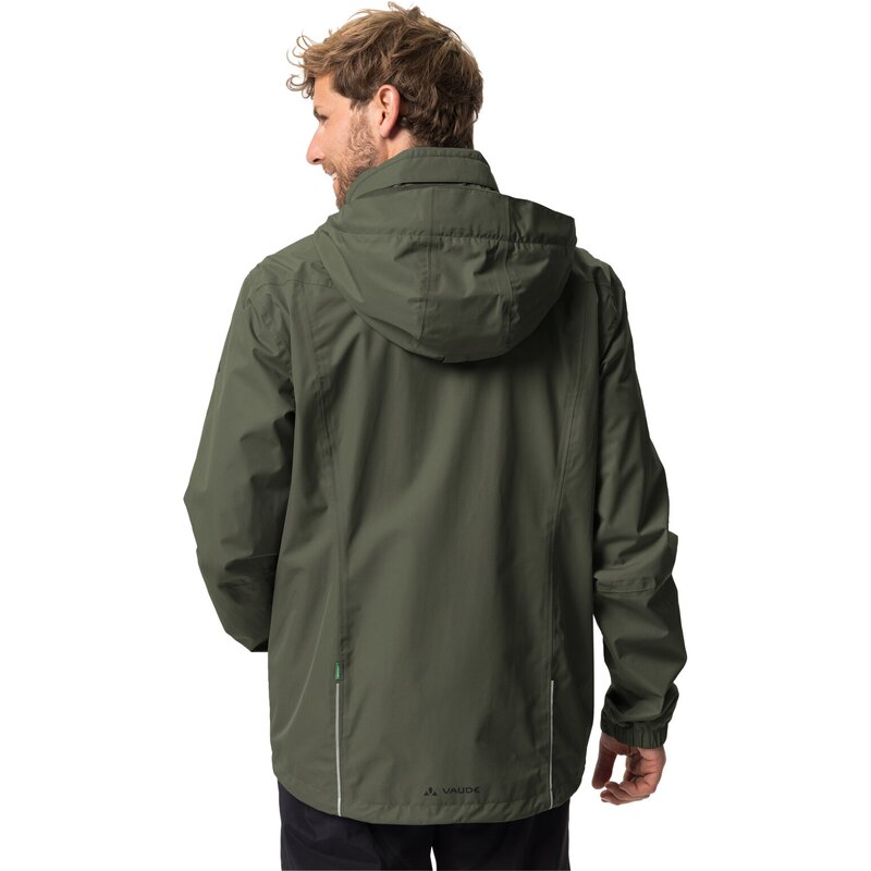 Экологически чистая защита от дождя. Эта легкая двухслойная куртка-дождевик с тонкой сетчатой подкладкой надежно защитит вас от влаги и ветра во время ежедневных велопрогулок. Капюшон можно свернуть и убрать в воротник. Со светоотражающими элементами. Материал изготовлен особо экологичным способом в соответствии со стандартом bluesign. Изделие изготовлено с использованием экологичной водоотталкивающей обработки Eco Finish без фторуглеродов (PFC). Маркировка VAUDE Green Shape означает экологически чистый, функциональный продукт, изготовленный из устойчивых материалов.