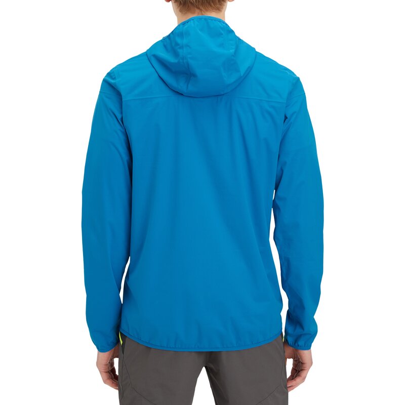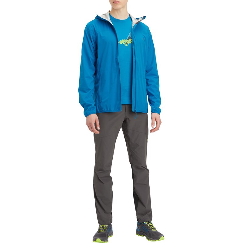 С функциональной курткой Pelmy из серии McKINLEY's GREEN SERIES вы будете идеально экипированы для активного отдыха на природе. Высокоэластичный, прочный и дышащий 2,5-слойный ламинат AQUAMAX с водонепроницаемостью 10 000 мм водяного столба гарантирует это. Функциональное волокно S.CAFÉ с экстрактом кофе эффективно устраняет запахи, а прикреплённый капюшон защищает от сквозняков. Куртка легко помещается в собственный карман и очень лёгкая, весит всего 250 г (размер M). - Эластичные манжеты из лайкры