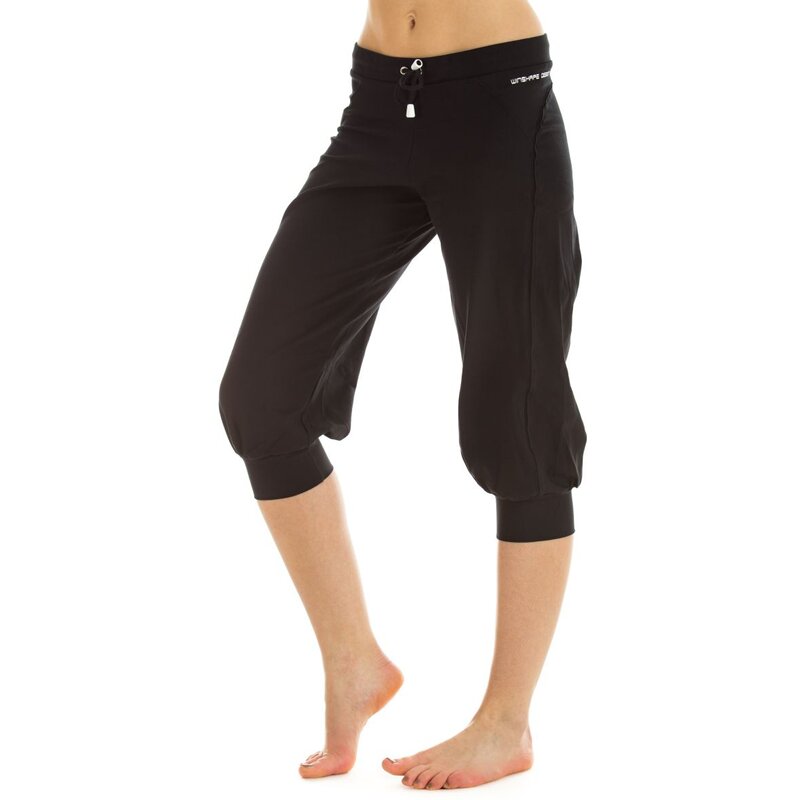 Спортивные брюки WBE5 длиной ¾, Winshape Slim Style. Спортивные брюки WBE5 — это облегченная версия длинных брюк WTE8 длиной ¾ и настоящая классика, переизданная Winshape! Недаром эти капри пользуются всеобщей любовью, ведь они — хамелеон и универсальная вещь: подойдут и для студии, и для отпуска, и для велопрогулки на выходных. Изысканный треугольный крой подчеркивает бедра и ягодицы. Надпись WINSHAPE на левом бедре гармонирует с белым шнурком.