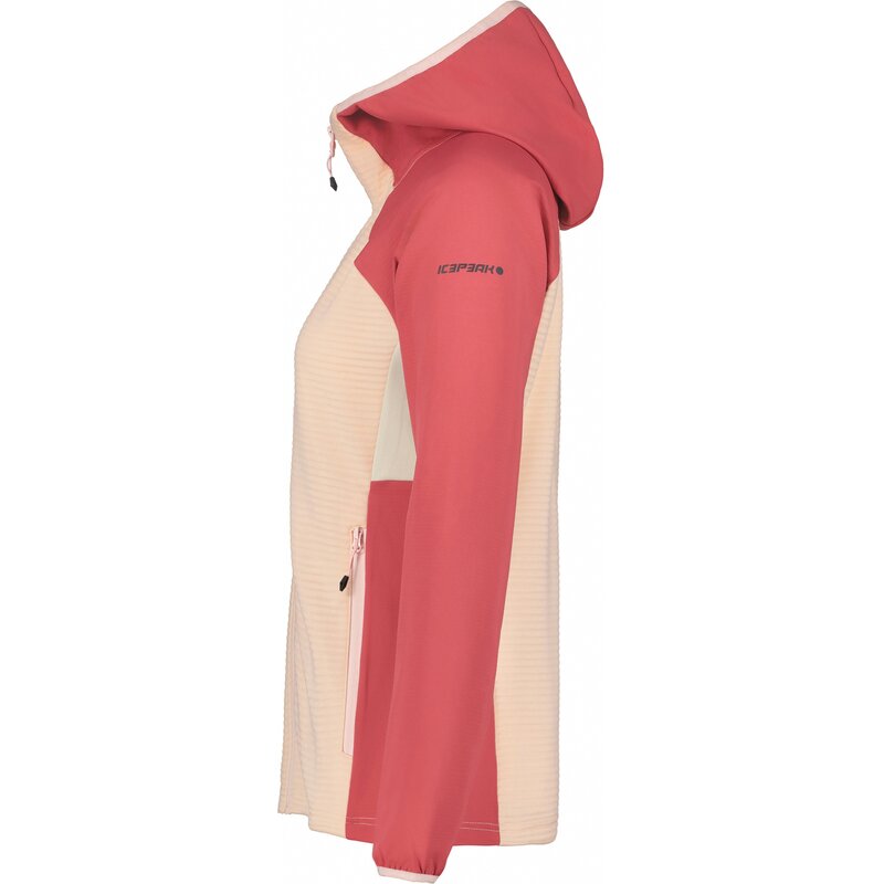 Женская куртка среднего слоя Icepeak. Приталенный крой. Несъемный капюшон. Эластичный капюшон. Эластичные манжеты. Два передних кармана на молнии. Ветрозащитная планка. Термоматериал теплый и легкий, быстро сохнет.