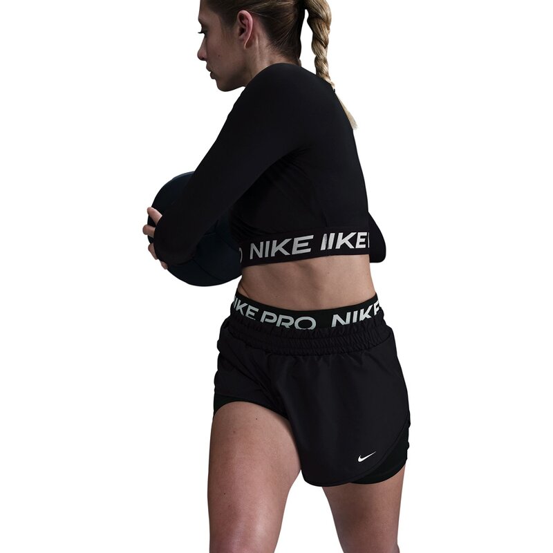 Выбирайте лучшее, чтобы добиться наилучших результатов. Эти шорты «2 в 1» обеспечивают эластичность, комфорт и свободу. Боковые разрезы и сверхлегкий внешний слой позволяют совершать большие прыжки. Кроме того, гладкие, эластичные внутренние шорты и пояс Nike Pro обеспечивают надежную посадку и уверенный стиль.