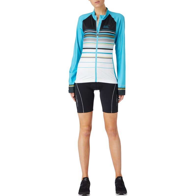 С функциональной и тёплой футболкой Kory с длинным рукавом от NAKAMURA езда на велосипеде в холодные дни станет для вас настоящим подарком. Ткань с дышащей и быстросохнущей технологией DRY PLUS ECO быстро отводит влагу от кожи, обеспечивая свежий микроклимат. Велосипедная майка с воротником-стойкой и застежкой-молнией по всей длине, карманом на молнии сзади и противоскользящей лентой на подоле, предотвращающей задирание майки.