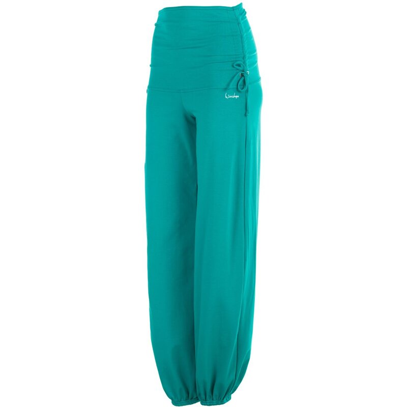 Тренировочные брюки WH1, Winshape Flow Style. Тренировочные брюки WH1 со сборкой на поясе из коллекции Winshape Flow Style станут вашим верным спутником на всех занятиях йогой, пилатесом и боди-стилем. Их особенность — широкий пояс, который регулируется с обеих сторон шнурком. Это брюки «2 в 1»: их можно носить как высокими и гладкими, так и глубокими, со сборками, до бёдер — как вам удобно!