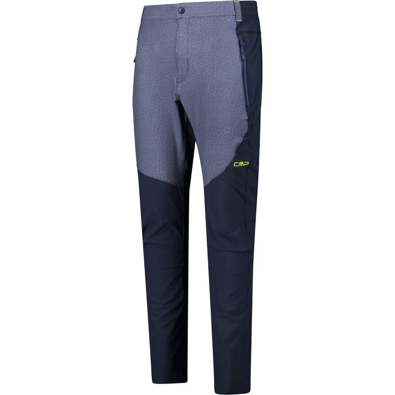 Мужские брюки, идеально подходящие для походов по городу и в горах, в условиях неопределенной и изменчивой погоды. Изготовлены из легкого эластичного нейлона с меланжевыми вставками из легкого эластичного полиэстера с эффектом денима. Высокая производительность благодаря функциональной технологии Dry, которая гарантирует повышенную воздухопроницаемость и естественную терморегуляцию, сохраняя тело сухим. Комфорт также обеспечивают эластичный пояс и наличие шлевок для ремня; застежка на кнопки с логотипом CMP, два удобных боковых кармана на молнии и один сзади, предварительно сформированные колени и подгиб с двойным дном для предотвращения истирания.