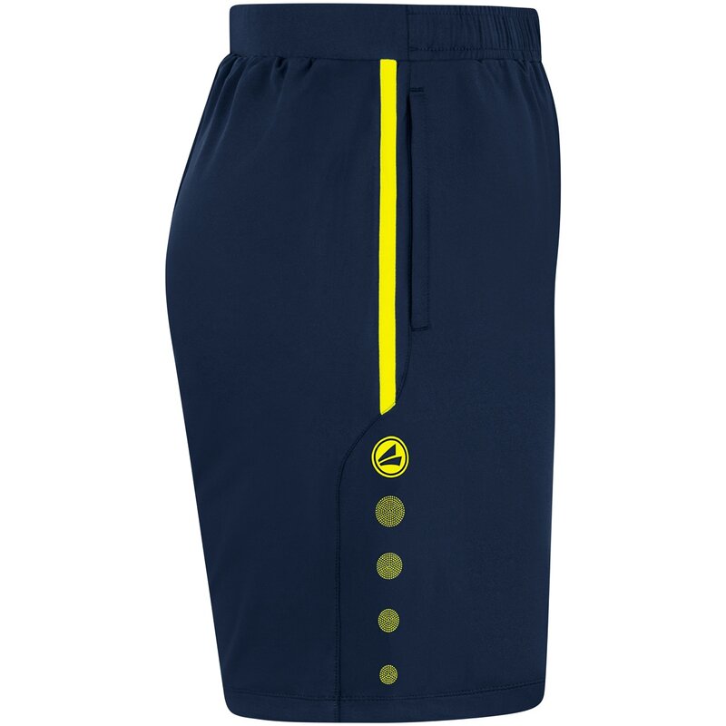 Изюминкой тренировочных шорт JAKO Allround является двухсекционный эластичный пояс со шнурком. Этот пояс обеспечивает особенно хорошую фиксацию. 90% шорт изготовлены из переработанного полиэстера и 10% эластана. Вы можете хранить ценные вещи в боковых карманах на молнии.
