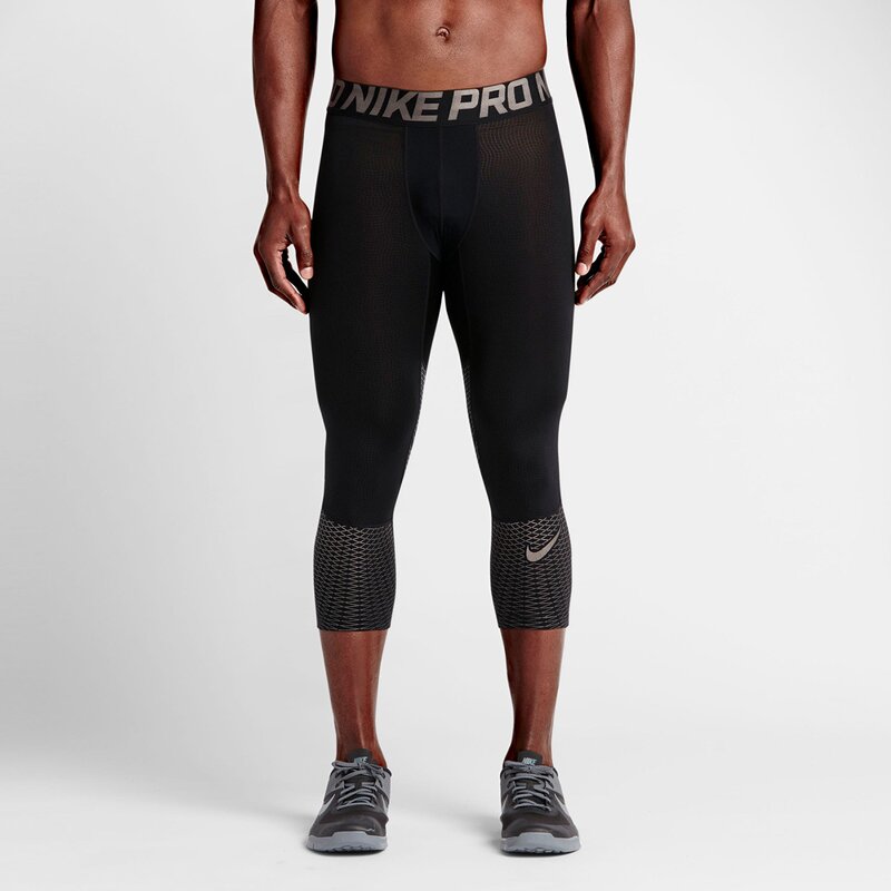 ПРОХЛАДНЫЙ КОМФОРТ И ЛЕГКОСТЬ ДЛЯ СОРЕВНОВАНИЙ. Мужские тренировочные тайтсы Nike Pro Hypercool Max Three-Quarter обеспечивают максимальную терморегуляцию благодаря влагоотводящей ткани и металлизированному крою длиной 3/4 для оптимального отвода влаги во время тренировки.