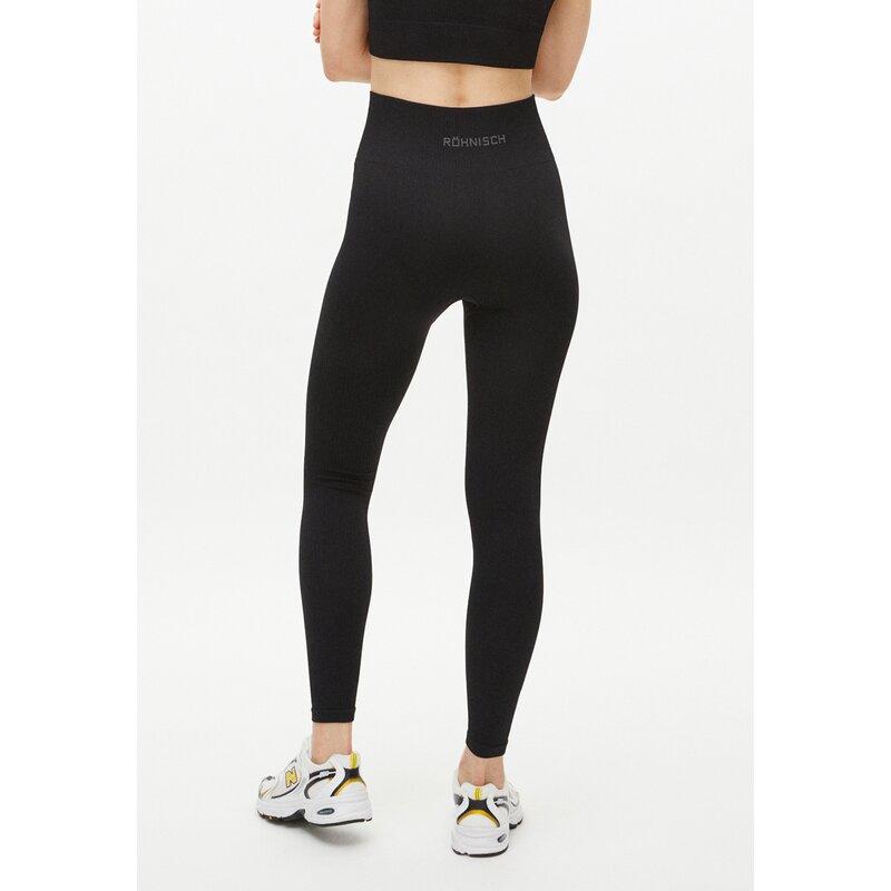 Бесшовные леггинсы из переработанного полиамида (70%) и влагоотводящей ткани. Они имеют мягкий ребристый крой, высокую талию и стандартную длину с внутренним швом 64 см. Дополнены жаккардовым логотипом Röhnisch по центру спины.