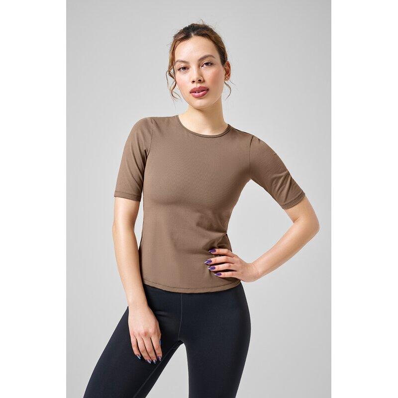 Рубашка в рубчик с чуть удлинёнными рукавами. Изготовлена из переработанного влагопоглощающего материала, приятного на ощупь. Овальный вырез добавляет изюминку, делая её одинаково стильной как для тренировок, так и для занятий спортом.