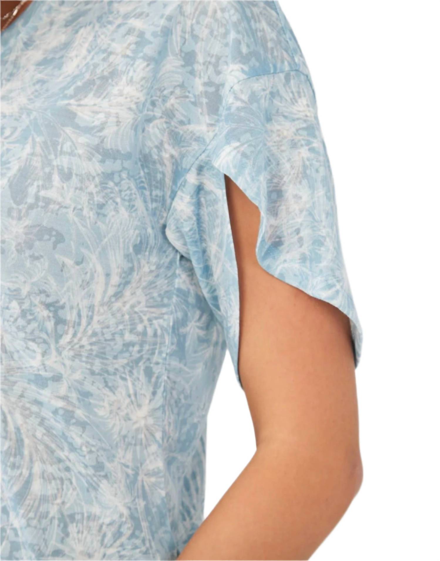 Не ищите дальше - вы только что нашли свою идеальную футболку! Представляем топ Palm Scribble Flutter Sleeve от FDJ - яркую модель, идеально подходящую для отпуска, с игривым рисунком пальм в синем цвете. Этот топ с короткими рукавами-крылышками и V-образным вырезом, подчеркивающим фигуру, создает причудливый силуэт. Изготовленный из смеси 50% вискозы и 50% полиэстера, он обеспечивает комфорт и легкость. Длина изделия - 24 дюйма, удобная застежка-липучка.