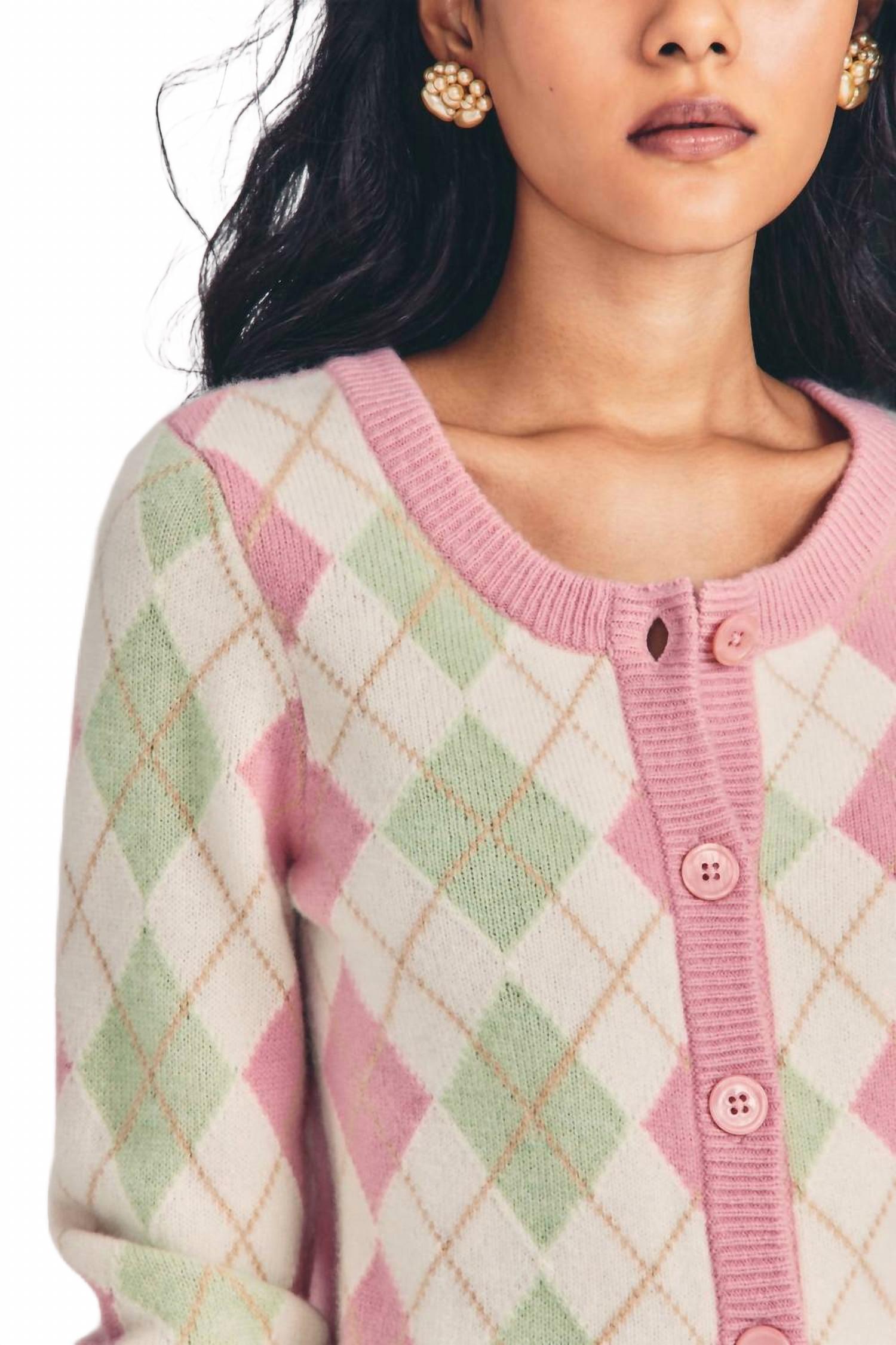 Этот кардиган с очаровательным ромбовидным узором может похвастаться круглым вырезом и эффектной контрастной резинкой на горловине, планке с пуговицами и подоле. Застежка на пуговицы придает изделию классический вид, а высокие манжеты рукавов подчеркивают силуэт. Инструкция по уходу: ручная стирка, сушка в разложенном виде на горизонтальной поверхности.