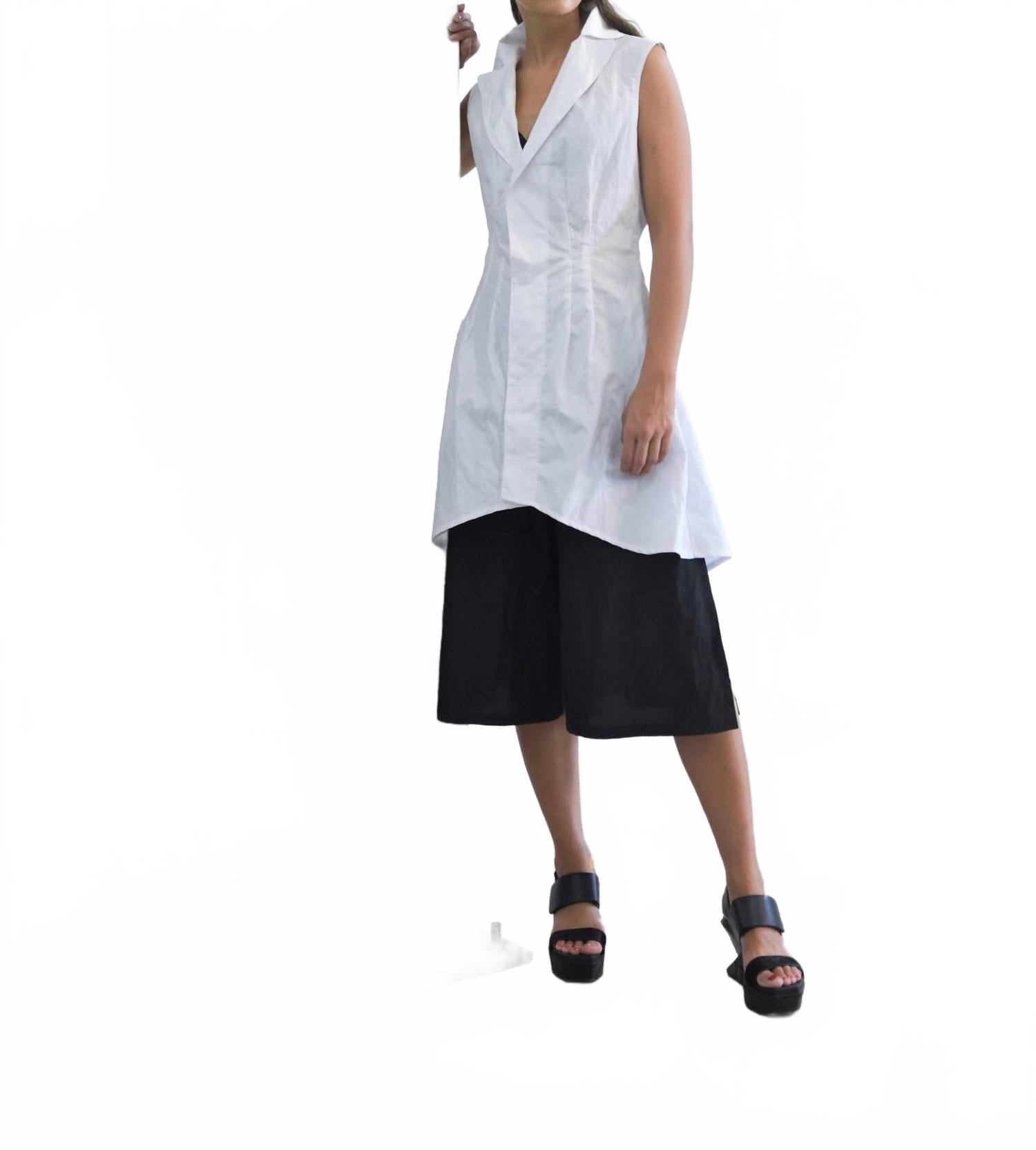 Эта классическая блузка-туника станет идеальным дополнением к любому гардеробу, она подчеркнет вашу индивидуальность и непринужденна. В этом шикарном топе вы легко перейдете с рабочего стола на ужин. Подчеркните свой стиль с помощью туники Imperial Collar от Simply Mila, выполненной в классическом белом оттенке для женщин, ценящих спокойную роскошь. Эта туника без рукавов имеет приталенный воротник и глубокий V-образный вырез, дополненный асимметричным подолом для современного нотки. Сделано в США, она сочетает в себе хлопок, полиэстер и металлизированную нить для легкой, слегка жатой отделки, дополненной едва заметной плиссировкой спереди и карманами. Застежка - пуговицы. Уход - машинная стирка в холодной воде, деликатный режим, сушить на воздухе вывернутым наизнанку. Доступно в размерах от XS до XL с указанием конкретных мерок для идеальной посадки. Идеально подходит для помолвок, открытий галерей и шикарных офисных помещений.