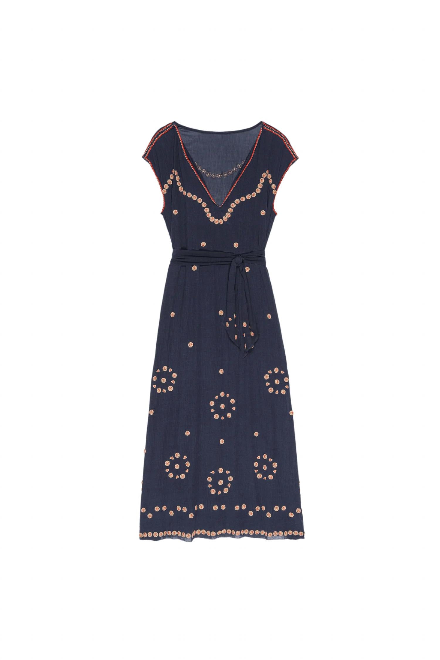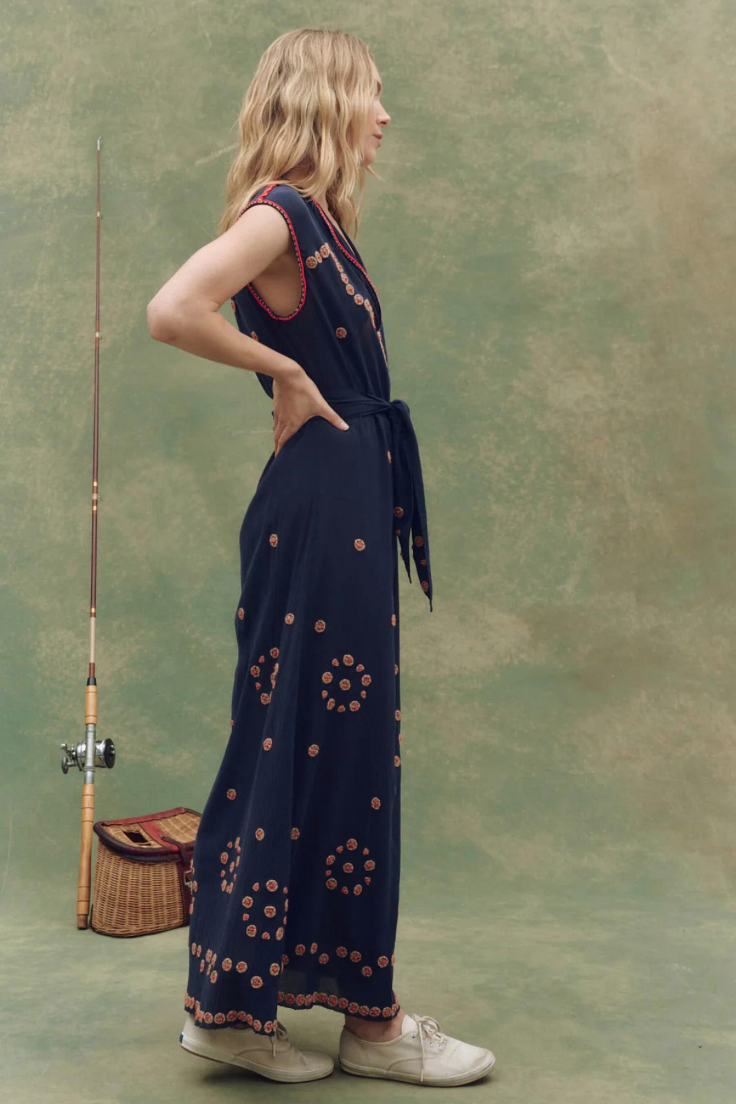 Откройте для себя платье-коридор Beaded Corridor Dress от THE GREAT. - потрясающее темно-синее платье, воплощающее в себе суть моды 1920-х годов в современной интерпретации. Это макси-платье с глубоким V-образным вырезом и короткими рукавами выполнено из смеси 62% хлопка и 38% купро, создающей полупрозрачный эффект. Косой крой создает естественную драпировку, подчеркнутую изысканной ручной вышивкой бисером и вышитыми веревкой цветочками. Платье имеет заниженную линию талии, включает в себя отдельную хлопковую комбинацию и пояс. Длина изделия составляет 54,7 дюйма (145 см) и выполнено с точностью до точного размера. Застежка - надевать. Уход - машинная стирка в холодной воде, сушка в стиральной машине при низкой температуре. Импортное. Идеально подходит для весенних званых ужинов в стиле бохо-шик.