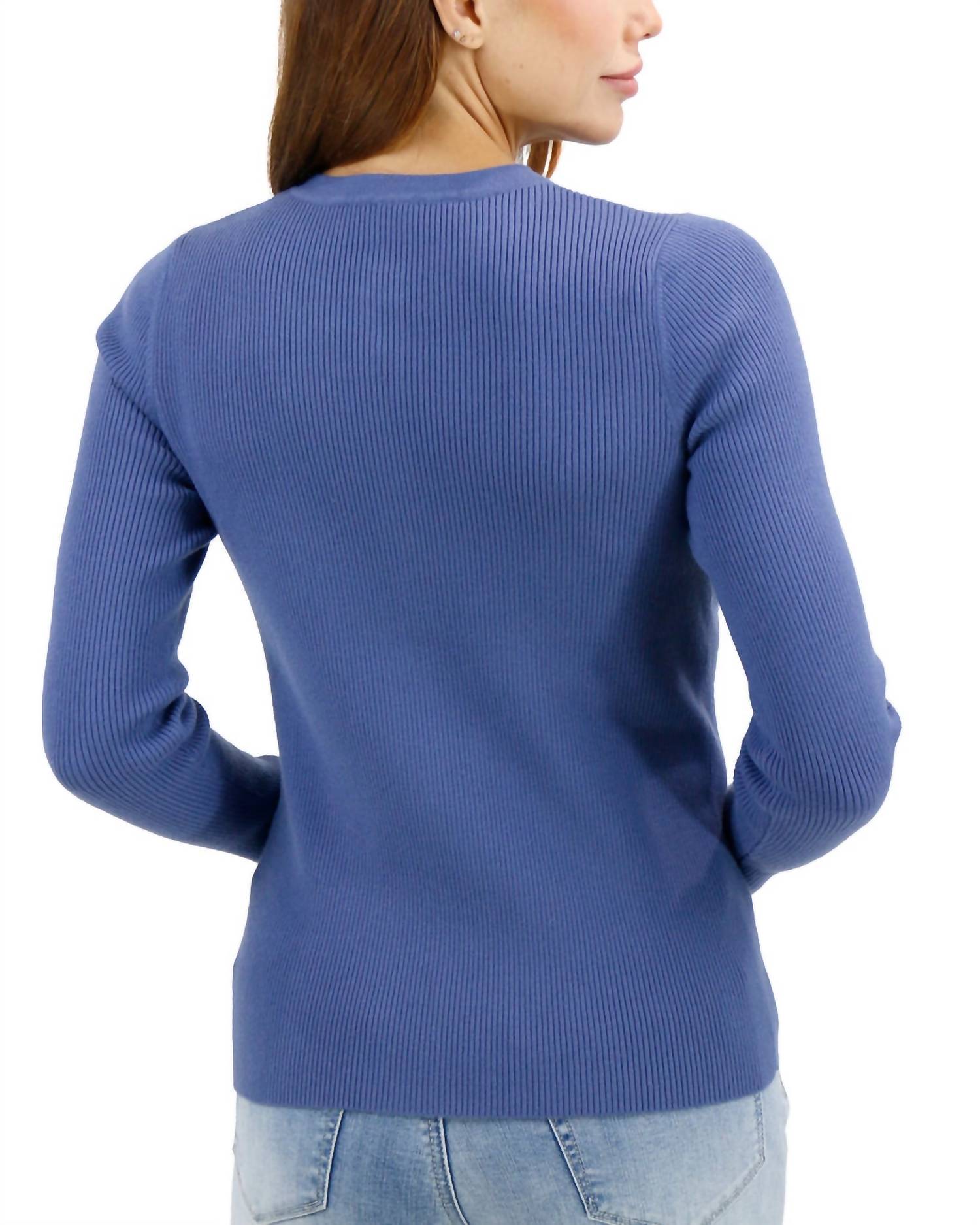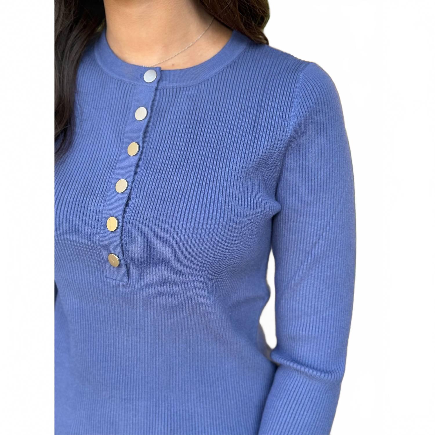 Ощутите идеальное сочетание комфорта и стиля в этом модном свитере с круглым вырезом, который легко обновит ваш гардероб. Сочетайте его с любимыми джинсами и лоферами для создания идеального образа. Откройте для себя свитер Grace and Lace Ribbed Henley - вневременную вещь в пленительном оттенке английского синего цвета. Этот текстурированный свитер с длинными рукавами и подчеркивающим круглый вырез, изготовленный вручную, дополнен функциональными металлическими пуговицами для дополнительного стиля и удобства. Роскошная смесь трикотажа в рубчик, состоящая из 48% нейлона, 29% вискозы, 18% ПБТ и 5% спандекса, обеспечивает невероятную эластичность и комфорт, идеально подходящие для осени и путешествий. Инструкции по уходу: стирать в стиральной машине на бережной основе в чехле для одежды с похожими цветами, затем сушить в горизонтальном положении и хранить в горизонтальном положении.