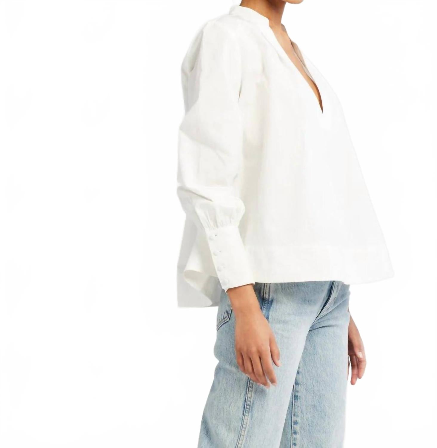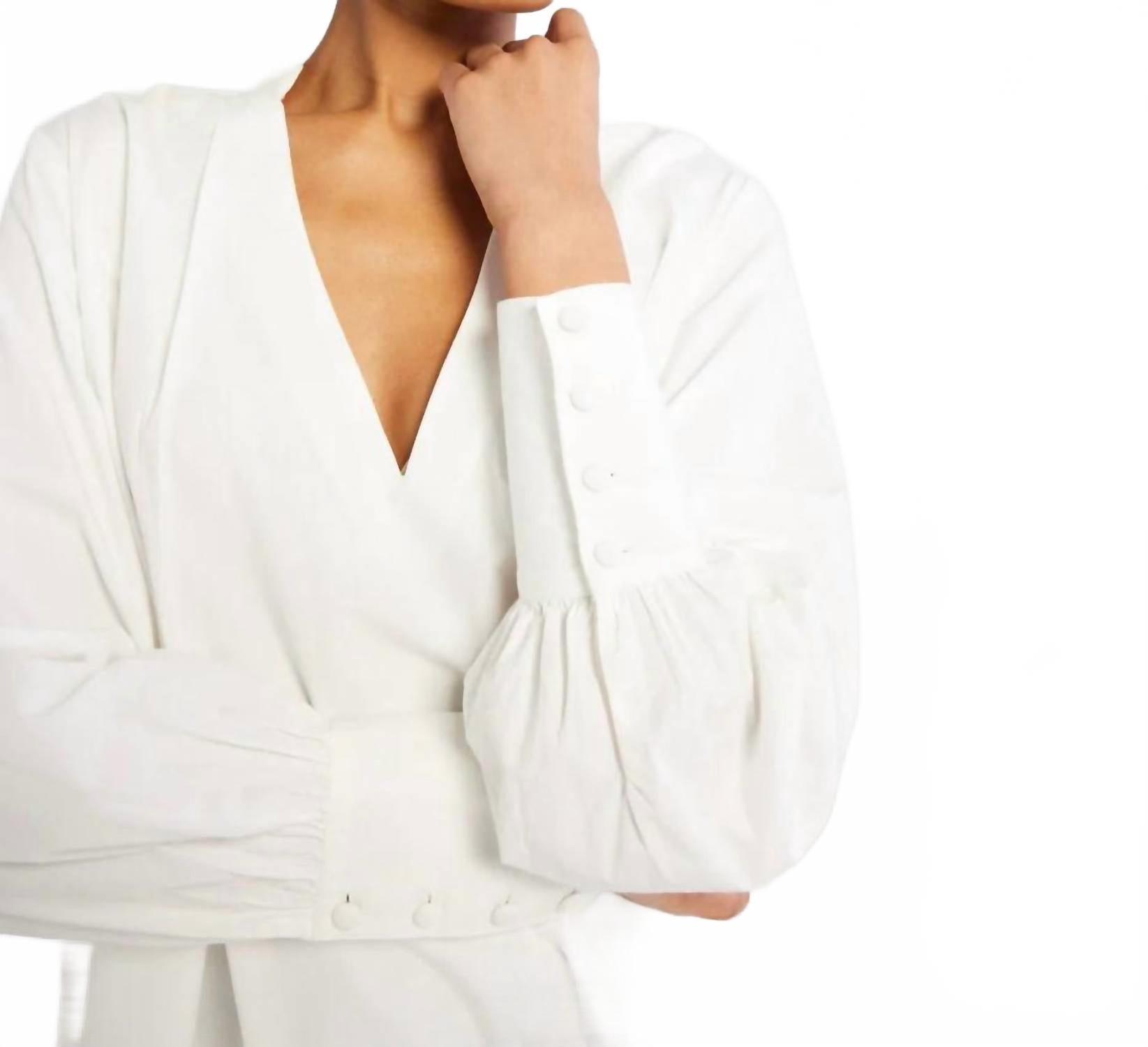 Представляем топ Freya с V-образным вырезом от MILLE - вневременная вещь для современной женщины. Изготовленный из 100% высококачественного хлопка, этот топ обеспечивает непревзойденный комфорт и воздухопроницаемость. Длинные рукава с манжетами на пуговицах, воротник-стойка с V-образным вырезом и удобная застежка. Благодаря четким линиям и безупречному белому оттенку, он создан для непринужденной элегантности. Доступен в размерах от S до XL, детали кроя указаны ниже: S (длина 24,5 дюйма, обхват груди 42 дюйма, обхват талии 53,5 дюйма), M (длина 25 дюймов, обхват груди 44 дюйма, обхват талии 55,5 дюйма) и L (длина 25,5 дюйма, обхват груди 46 дюймов, обхват талии 57,5 дюйма). Размеры подходят для большинства размеров 4-6, 8 и 10 соответственно.