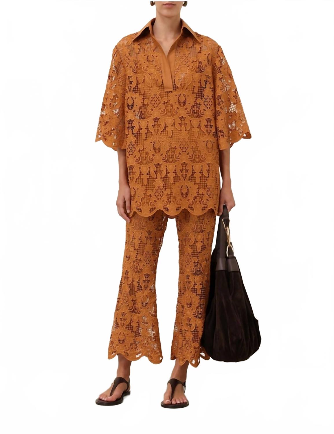 Кружевные расклешенные брюки Coco в цвете бисквит Zimmermann, Biscuit